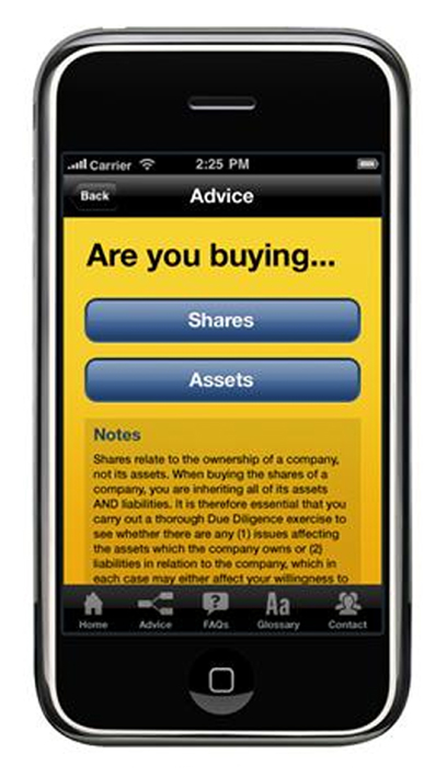 “At the very least I hope this app will save people some money on their legal fees. It will reduce the time lawyers need to spend on explaining the basics of a corporate transaction and give users better value for money from their expert advisers.